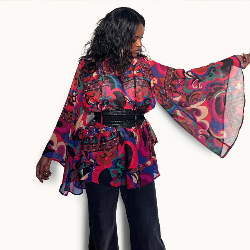 Une robe libre, fluide et féminine, pensée pour s’adapter à toutes les silhouettes et à toutes les envies. Ses manches amples et vaporeuses créent un tombé aérien, tandis que son tissu léger accompagne chaque mouvement.